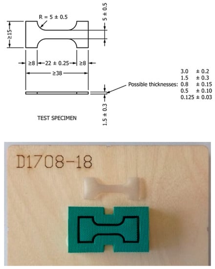 - ASTM D1708-13:2014; Standard Test Method for Tensile Properties of Plastics. ASTM International: West Conshohocken, PA, USA, 2013.