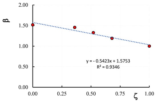 The elastic modulus value in the tested columns, Emas, calculated by the slope of the axial stress-axial strain curves from 5 to 40% of the maximum axial stress, are reported in the last column of Table 3. The obtained results show that the elastic modulus value in the confined columns is higher than that in the unconfined ones. On average, the increase is 19%, 32.7%, 45.4% and 51.7% for ζ = 0.68, 0.56, 0.36 and 0, respectively. The variation between the ratio β = Econfmas/Euncmas being Econfmas and Euncmas, the elastic modulus of confined and unconfined masonry columns, respectively, and the vertical spacing ratio ζ, is illustrated in Figure 11. The equation of the β-ζ trend line is shown in the same figure; as can be noted, the β-ζ variation can be efficiently represented by a linear law (the correlation coefficient is R2 = 0.936).