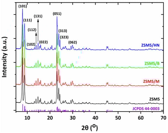 XRD spectra of ZSM-5-based zeolite 3D-printed biocarriers.