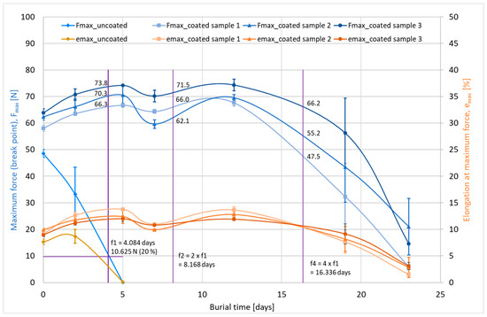 From this, the values of the maximum tensile forces for the burial times f1, f2, and f4 (4, 8, and 16 days) are examined for further calculation and classification (Table 4):