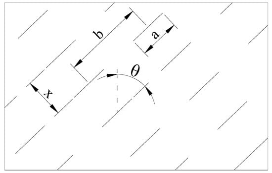According to damage theory, the definition of damage is both the premise and basis of damage model establishment. Some scholars [,] believe that the fractures in rock masses generally have a certain directionality in spatial distribution in most cases. The macroscopic damage of fractured rock masses can be defined according to the geometric parameters of fractures, such as distribution spacing and geometric size.