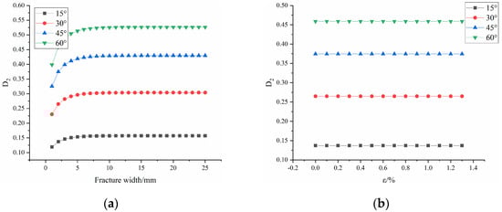 Curve of  under different fracture dip angles: (a) with fracture width; (b) with strain.