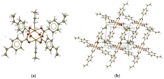 2.4. Crystallography of the Cu(II) Paddle-Wheel Complex [Cu2(µ-vba)4(CH3CN)2]