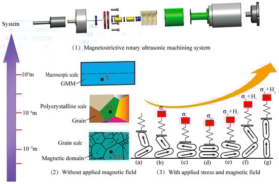 - The proposed model can accurately predict giant magnetostrictive materials’ deformation and hysteresis effects in ultrasonic systems by comprehensively considering parametric information at different scales and the coupled magnetic-elastic-thermal-mechanical impacts in a mixed external environment.