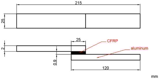 Along with the increasing production of automobiles, the corresponding energy consumption and environmental protection problems are becoming increasingly serious. Energy savings and emission reduction have become the primary issues that need to be addressed for the sustainable development of the automotive industry. Vehicle weight reduction is one of the effective measures to improve energy efficiency and reduce emissions [1]. Carbon fiber reinforced plastics (CFRP), which exhibit a high specific modulus and high designability, have great potential for automotive lightweighting [2,3,4,5]. However, the poor plasticity and fracture toughness of CFRP materials make it possible to produce sharp corners after damage fracture, causing damage to passengers [6]. CFRP/metal composite laminates [7,8,9] can effectively reduce the cost of production, without compromising strength and stiffness, while overcoming the shortcomings of single material performance [10,11]. With the development of automotive lightweighting, 7000 series aluminum alloy materials have gradually replaced traditional steel materials [12,13,14,15,16]. A composite of 7000 series aluminum alloy and CFRP material can obtain excellent comprehensive performance of the high strength of CFRP and the good toughness of aluminum alloy.