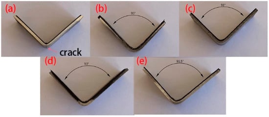 The angles of the unloaded parts were measured using a multifunctional protractor. The difference in angle before and after forming is shown in Figure 6.