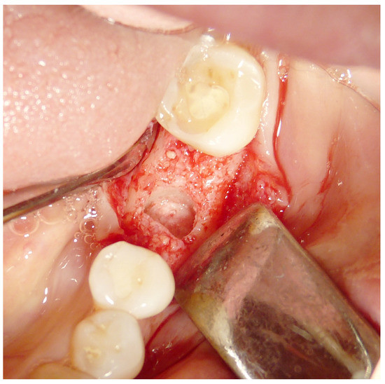 - Minetti, E.; Taschieri, S.; Corbella, S. Autologous Deciduous Tooth-Derived Material for Alveolar Ridge Preservation: A Clinical and Histological Case Report. Case Rep. Dent. 2020, 2020, 2936878. [Google Scholar] [CrossRef] [PubMed]
