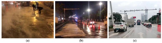 Applications of rapid-hardening HSFRC in practices. (a) Casting of concrete. (b) Hardening of concrete. (c) Operation situation for 3 years.