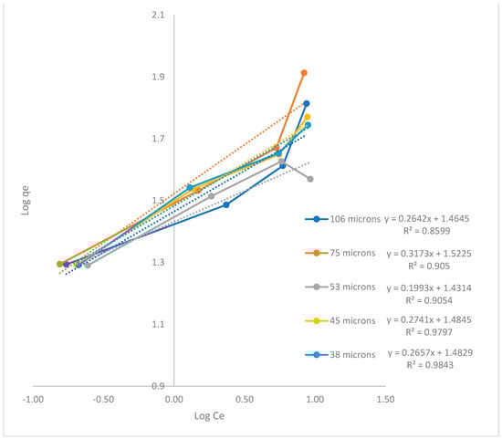 The Freundlich isotherm parameters were determined by plotting log Ce against log qe.