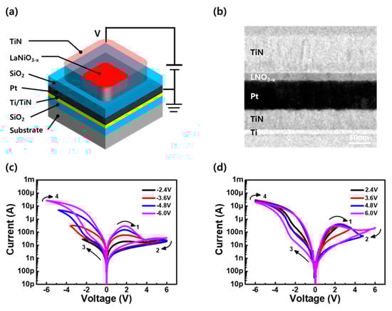 Kim, D.; Lee, J.; Kim, J.; Sohn, H. Reset-First and Multibit-Level Resistive-Switching Behavior of Lanthanum Nickel Oxide (LaNiO3−x) Thin Films. Materials 2023, 16, 4992. https://doi.org/10.3390/ma16144992
