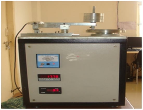 To evaluate the wear performance of PF-based saguvani wood–polymer composite with respect to dry sliding conditions, the wear characterization is performed through pin-on-disc-type wear testing instrument as per ASTM G99-95a standard [15]. Figure 3 shows a pin-on-disc wear testing instrument used for this work. The tests are conducted with a sliding speed of 1.30, 2.61, and 3.92 m/s, a load of 10 N, 20, and 30 N, and a sliding distance of 392 m, 785 m, and 1177 m. Six replicas of fabricated composite test specimens were tested.
