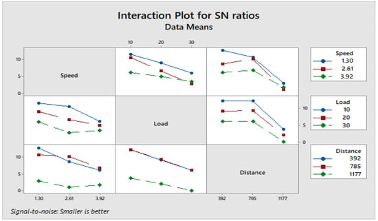 Analysis of variance for means in Table 14 clearly indicates that sliding distance (P = 55.72%), sliding speed (P = 15.89%), load (P = 10.60%), interactions of (B) sliding speed × (C) sliding distance (P = 5.31%), and speed × load (A × B) (P = 5.43%) have a significant effect on the wear loss. But, interfaces of (B × C) load × distance (P = 3.14%) have little impact on wear loss because their values are much lower than error (P = 3.91%), and hence they are ignored. From response Table 15 for means, it is noticed that sliding distance has a key influence on wear loss followed by sliding speed and load.