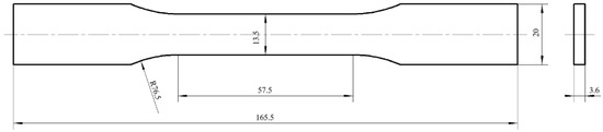 Specific dimension of PLA and PLA/CF samples prepared through the FFF method in the tensile test (unit: mm).