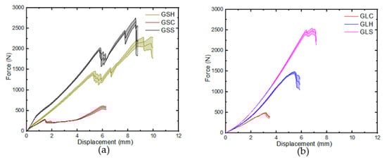 Load–displacement curves: (a) GS, (b) GL.