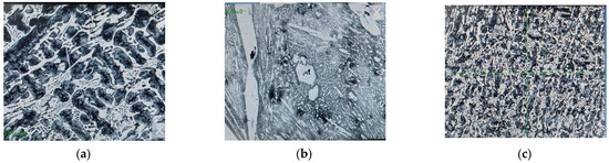 - According to reference [26], cast irons with chromium percentages above 10% show increased wear resistance. The typical range of Cr content assumed in the formulas for such cast irons is 10–35%, being in accordance with the experimental results obtained for mixing blade no. 2;