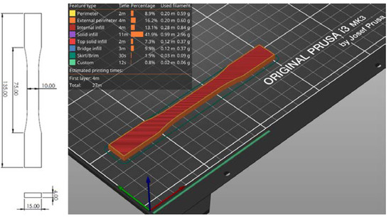 Test specimen (ISO 527-2 [45] standard test specimen for uniaxial quasi-static tensile testing)—G-code generation in a slicer.