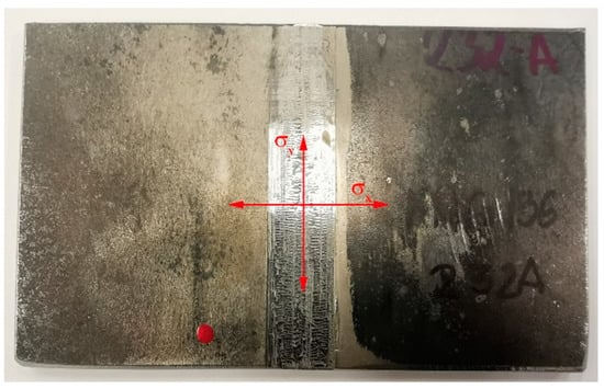 In the next stage of the study, the welded samples were subjected to an X-ray diffraction analysis to determine the values of residual stresses in the specified areas, both parallel and perpendicular to the direction of welding as illustrated in Figure 7.