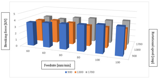 Table 7 contains information about the breaking strength, F1 and F2. On this basis, the average breaking strength for each case was calculated.