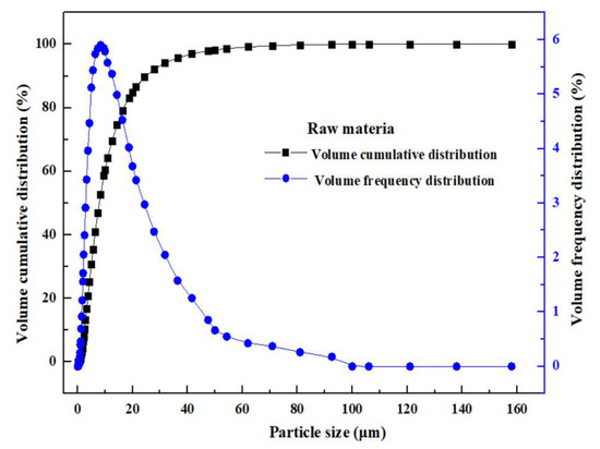 Figure 1 shows the particle size distribution of the MSD samples. Table 2 presents the particle size values at the particle size level of D10, D50, D90, and D98 of the MSD samples, together with the volume average particle size, area average particle size, and corresponding surface area to volume ratio for the MSD sample. Table 2 shows that 90% of MSD samples have a particle size of 24.85 μm.