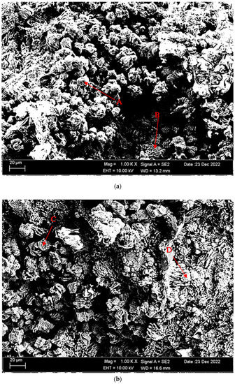Figure 14a,b. Looking at the SEM micrographs (