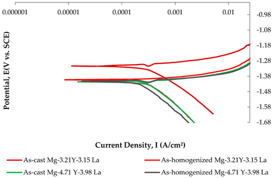 Figure 13 shows current–voltage curves of the Mg-3.21Y-3.15 La and Mg-4.71Y-3.98 La alloys, while