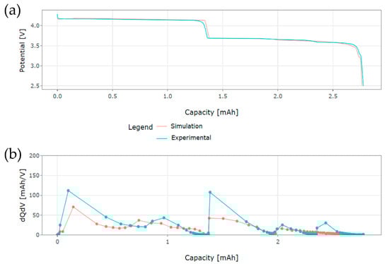 A good alternative to determine the ion transport properties within electrode materials of LIBs and SIBs when the aforementioned assumption is not met is to resort to numerical simulations of GITT characterization data using either electrical equivalent circuit models or electrochemical pseudo-two-dimensional (P2D) models [32,33,34,35,36]. These modeling frameworks enable the quantification of parameter values as the diffusion coefficient in the solid phase of battery porous electrodes, Ds, and the kinetic rate constant parameter, k, in the case of pseudo-two-dimensional electrochemical modeling. A reasonable agreement of the model predictions compared to the experimental data is shown in these previous works.