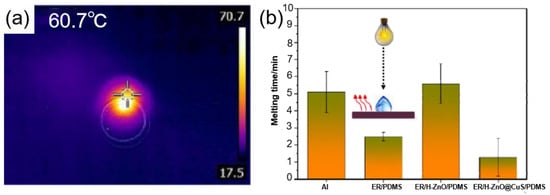 - Liu, Y.; Wu, Y.; Liu, Y.; Xu, R.; Liu, S.; Zhou, F. Robust Photothermal Coating Strategy for Efficient Ice Removal. ACS Appl. Mater. Interfaces 2020, 12, 46981–46990. [Google Scholar] [CrossRef]