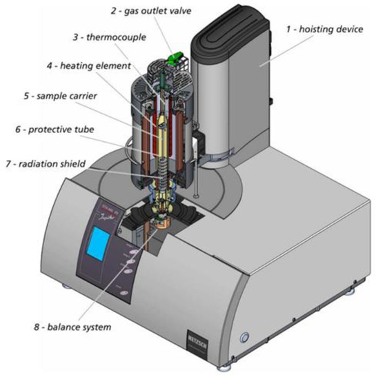 For the experiments, the STA 449 F3 Jupiter thermal analyser, Netzsch (Selb, Germany), was applied (see Figure 2).