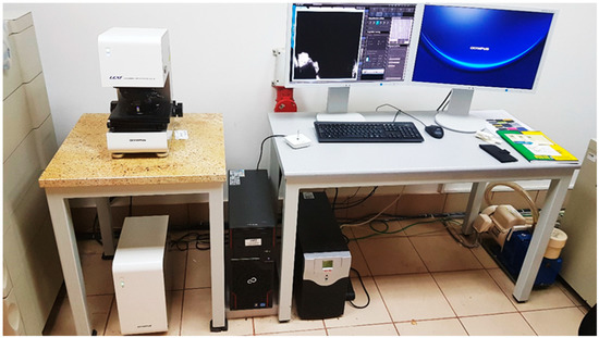The microstructure analysis and additional porosity measurements of the samples were conducted using an Olympus 4100 LEXT (Shinjuku, Tokio, Japan)) confocal microscope (Figure 5) with consideration of four types of material samples. The samples build additively with the use of SLM and FDM/FFF technologies were cut in two planes—along the direction of layer deposition during the 3D printing process (plane 0XY in Figure 4) and along the fabricated layers (plane 0YZ in Figure 4).