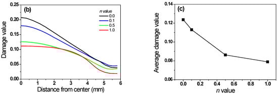 - The damage value in the center region of the wire reduced with increasing n of the wire during wire drawing, because the effective stress increased with increasing the n of the wire