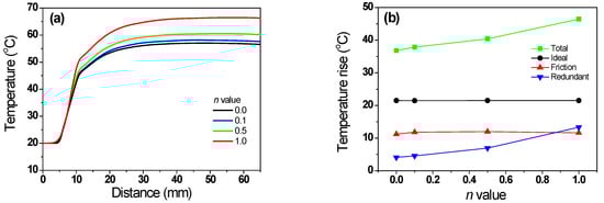 - The temperature increase of the wire augmented as the n of the specimen increased despite the same amount of ideal plastic deformation, which is associated closely with redundant work. The shear strain increased with the n of the specimen, and this shear strain generated redundant work, leading to a high temperature rise.