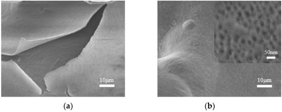 Studies have shown that secondary anodization could improve the flatness of TiO2 nanotubes [] and enhance the binding force between the TiO2 nanostructure and the matrix. In this study, after 30 V anodization for 20 min (3D-1), secondary anodization was conducted under identical conditions (3D-2), as shown in Figure 5. The results indicate that the bonding properties of TiO2 nanotubes to the substrate improve following the secondary anodization, in addition to increasing the flatness of the TiO2 nanotubes.