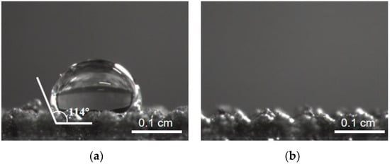 Digital pictures of water contact angles for (a) 3D-Ti and (b) 3D-Ti-2.