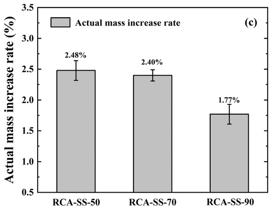 Actual mass increase rates of RCA: (a) dry state (IWC = 0%); (b) natural state (IWC = 2.66%); (c) saturated state (IWC = 5.88%).