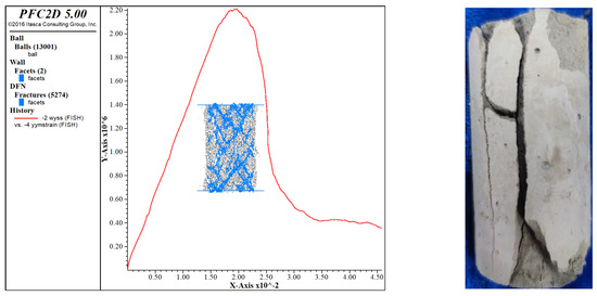 The parameters obtained from the indoor tests and the stress–strain curve criteria were used to select the set of fine parameters with the highest degree of agreement as the fine parameters for the final PFC simulation. Given a large number of fine parameters to be set for the parallel bonding model, the frequently used “trial-and-error” method was used in this paper for parameter calibration [31].
