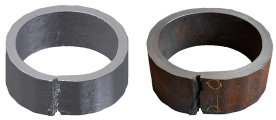 The cause of the breakout was a longitudinal crack on the side of the inner radius of the caster, which was more than 1 m long. The crack was caused by the shrinkage of the outer layer of the shell and thermal stress (Figure 8) in the temperature interval where the steel was of low strength. The formation of longitudinal cracks is more frequent in blanks of a circular cross-section than in rectangular ones, especially in casting peritectic steels, due to a large shrinkage.