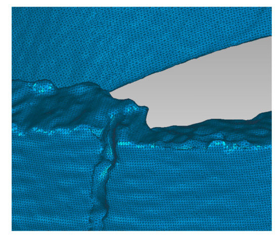 The scanned objects were then modified by the software in a form that corresponds to the real state. A comparison of the scanned part of the shell with the real object is shown in Figure 9.