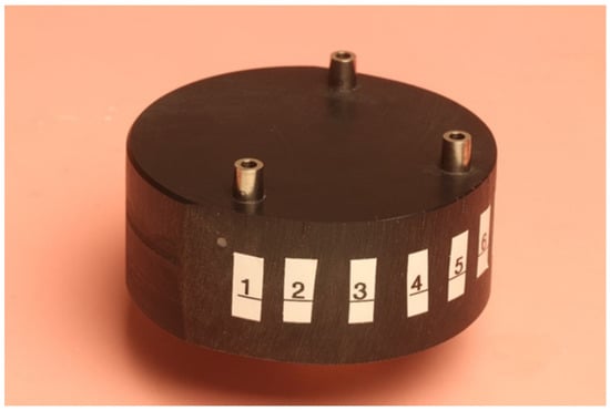 Specimens of the 6 test materials. 1: Gr. S, 2: Gr. N, 3: Gr. V, 4: Gr. L, 5: Gr. O, 6: Gr. C.