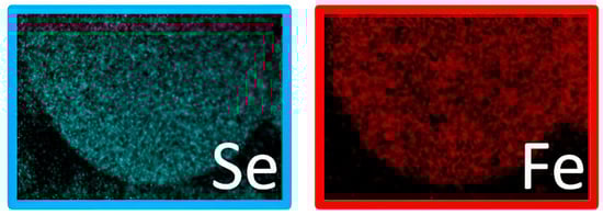 The corresponding EDX maps provided information on the elemental composition of the particles. In detail, Figure 2 shows a homogeneous distribution of Fe and Se elements within the sample, suggesting uniform electrochemical behavior.