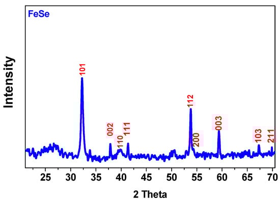 The X-ray diffraction pattern in Figure 3, showing the typical peaks of iron (II) selenide, confirmed the nature of the sample [25].