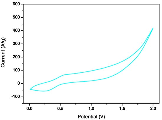 Cyclic voltammetry of FeSe at 20 mV/s in the range of 0–2 V.