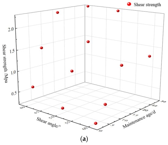 Figure 21 shows the shear strength changes under different curing ages and shear angles.