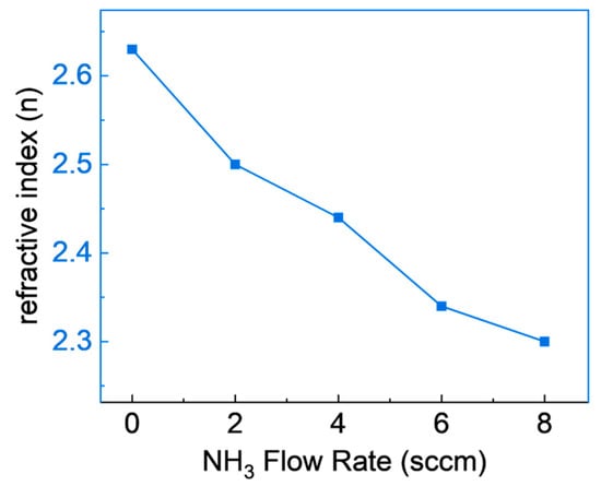 Refractive indices of SiCN films deposited with various NH3 flow rates.