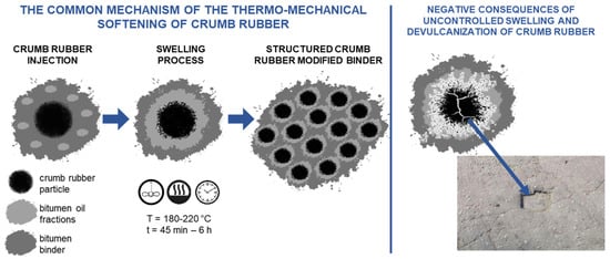 - Dong, D.; Huang, X.; Li, X.; Zhang, L. Swelling process of rubber in asphalt and its effect on the structure and properties of rubber and asphalt. Constr. Build. Mater. 2012, 29, 316–322. [Google Scholar] [CrossRef]