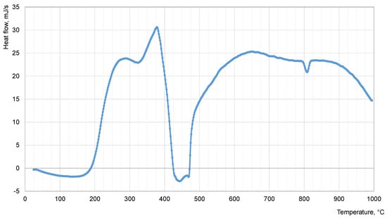 - exothermic stage (with heat release) at 190–425 °C, identified with the main period of thermal oxidation of the material, proceeding up to 378 °C, and the related evaporation of the formed oxidation products, indicating the beginning of the destructive process of rubber granules;