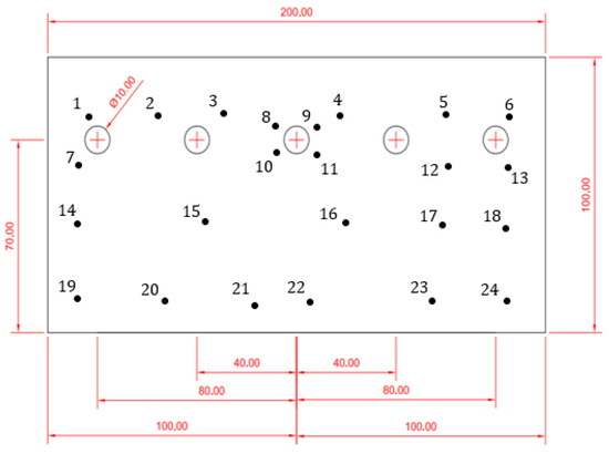 Representation of the selected points of interest on the zinc-coated sheets of steel. Reported values are in mm.