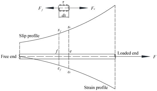 Equation (2) shows the expression for the post-yield bond stress. In the equation, lies between the yield and ultimate forces of the reinforcement and can be obtained through pull-out tests.