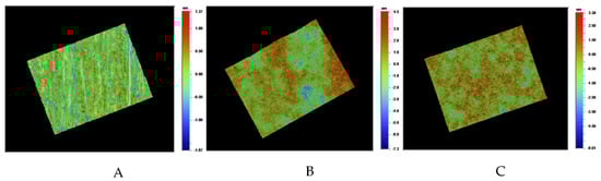 Surface morphology images of (A) the LD surface after polishing with sandpaper; (B) the LD surface after HF acid etching; and (C) the LD surface after HF etching followed by 300 s plasma treatment.