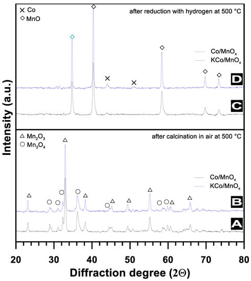 Chicago/Turabian StyleGreluk, Magdalena, Marek Rotko, Grzegorz Słowik, Sylwia Turczyniak-Surdacka, Gabriela Grzybek, and Katarzyna Tyszczuk-Rotko. 2023. "Effect of Potassium Doping on the Structural and Catalytic Properties of Co/MnOx Catalyst in the Steam Reforming of Ethanol" Materials 16, no. 15: 5377. https://doi.org/10.3390/ma16155377