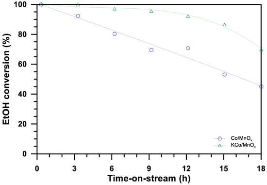- Greluk, M.; Rotko, M.; Słowik, M.; Turczyniak-Surdacka, S.; Grzybek, G.; Góra-Marek, K.; Kotarba, A. Effect of Potassium Promoter on the Performance of Nickel-Based Catalysts Supported on MnOx in Steam Reforming of Ethanol. Catalysts 2022, 12, 600. [Google Scholar] [CrossRef]